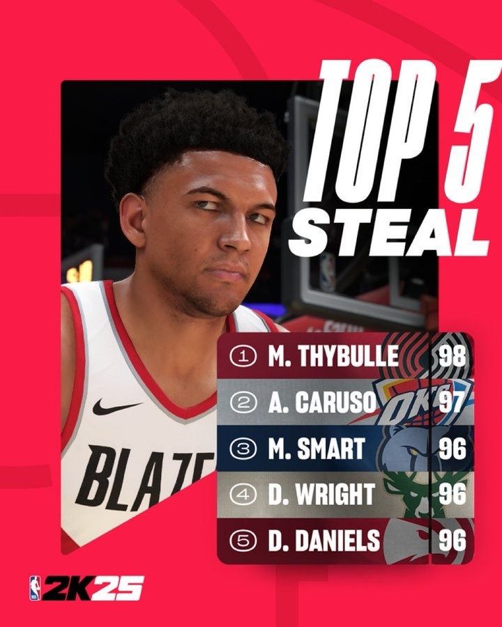 NBA2K25抢断能力值公布:塞布尔98第一 卡鲁索97第二