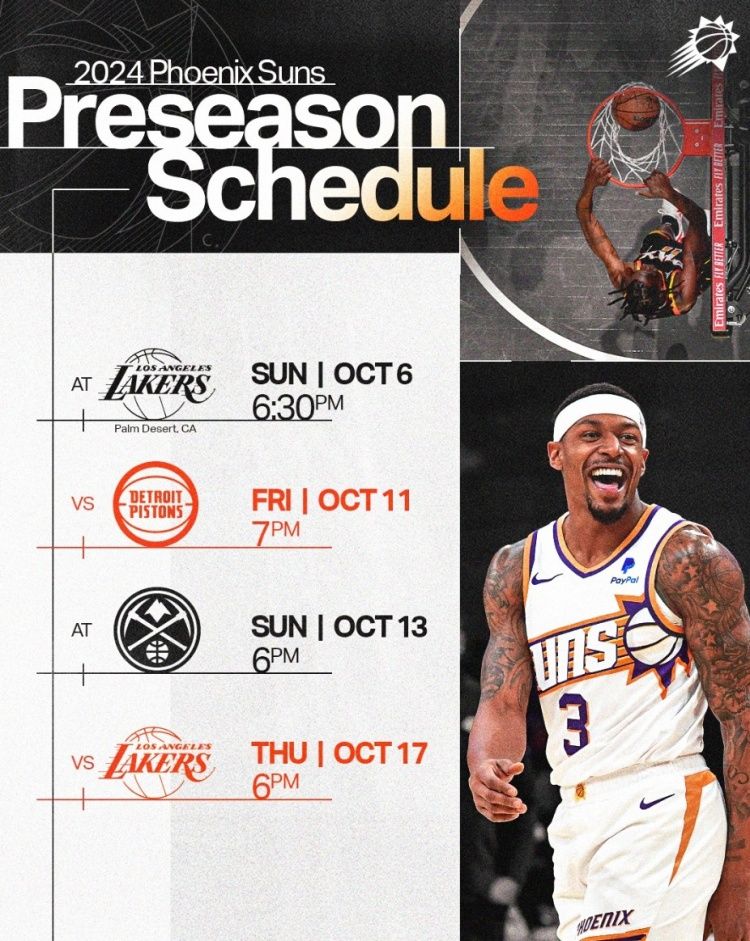 🔥太阳公布新赛季季前赛赛程:10月7日开打 两次对阵湖人