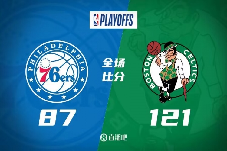 比赛开始,双方开场阶段势均力敌,比分咬得很紧,凯尔特人频繁冲击内线得手,76人连投带罚给出回应。76人全队外线手感冰凉,凯尔特人连中三分逐渐将分差拉开到两位数,76人继续杀伤内线苦苦追赶,半场战罢凯尔特人57-49领先。易边再战,76人进攻完全陷入停滞,凯尔特人火力全开单节飙中7记三分将分差拉开到25分,末节凯尔特人更是将优势扩大到30分以上,过大的分差让比赛早早失去悬念,最终,凯尔特人121-87大胜76人,将总比分扳成1-1平。