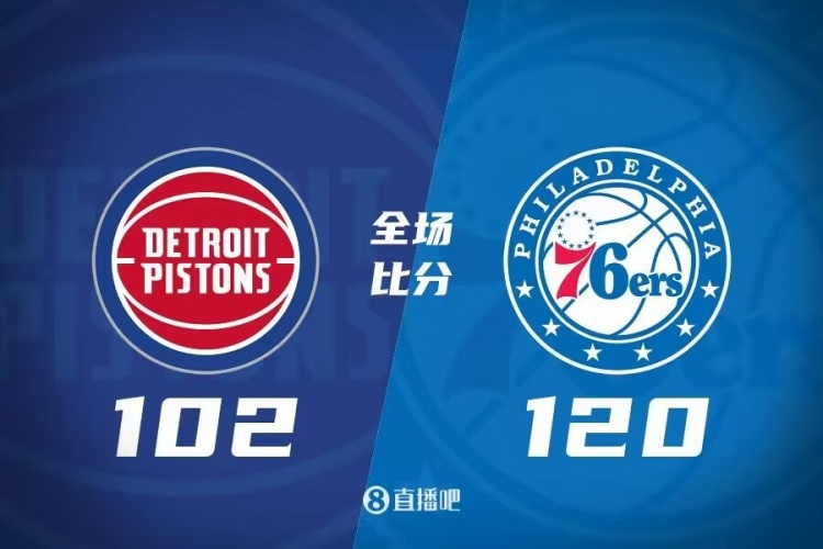 比赛开始,双方进入状态都较慢,恩比德攻守两端带领球队建立主动权,艾维则是苦苦支撑起球队进攻,双方换上替补后展开对攻战,比赛节奏很快,首节76人领先8分,次节梅尔顿复出登场上来就命中三分,富尼耶里突外投连砍8分助队追分,希尔德也能回应,双方在外线连续对轰,恩比德继续全面发挥,半场76人领先12分。下半场,萨瑟和杜伦开始发挥,活塞连续追分一度缩至差1分,恩比德接连杀内线带队10-2止血回应,三节76人继续领先12分,末节恩比德继续全面表现,76人接连外线发炮一波11-0直接拉开20分以上领先,最终76人120-102轻取活塞,拿到6连胜同时送对手5连败。