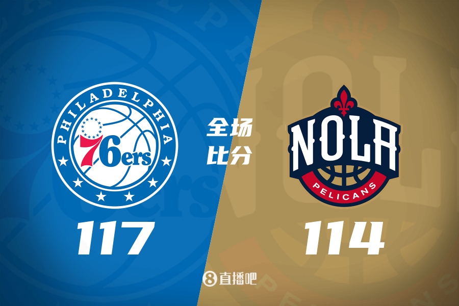 比赛开始,双方开场阶段短暂相持,76人火力全开轰出21-4的进攻狂潮一度取得20分的优势,次节76人命中率下降,鹈鹕轮番冲击内线连投带罚不断蚕食分差,霍金斯打成2+1后分差仅剩3分,半场战罢76人57-50领先。易边再战,鹈鹕里突外投完成11-2的攻击波反超比分,76人连得5分止血,此后双方陷入缠斗,比分交替领先,末节双方争夺陷入白热化,关键时刻斯图尔特飙中三分,76人连续抢到前场篮板补篮得手,西布龙绝平三分失手。最终,76人拒绝逆转,117-114险胜鹈鹕。