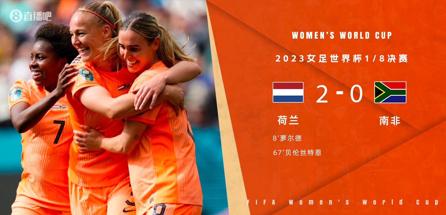 直播8月6日讯 北京时间8月6日上午10:00,女足世界杯1/8决赛,荷兰女足对阵南非女足。上半场,萝尔德补射破门,塞奥波森韦、姆巴内接连伤退。下半场,贝伦丝特恩射门造斯沃特黄油手。全场结束,荷兰女足2-0南非女足,下一轮将对阵西班牙女足。