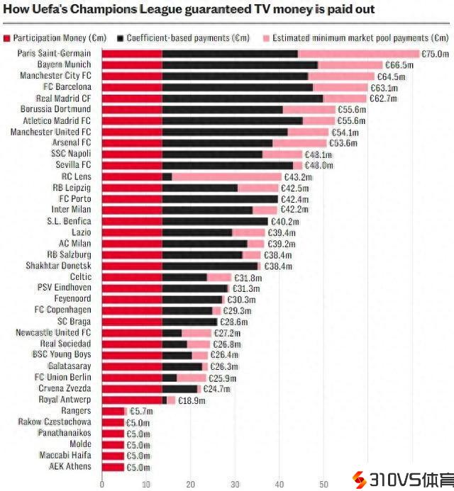 欧冠小组赛估量支出:巴黎7500万欧第1,拜仁、曼城第二第三