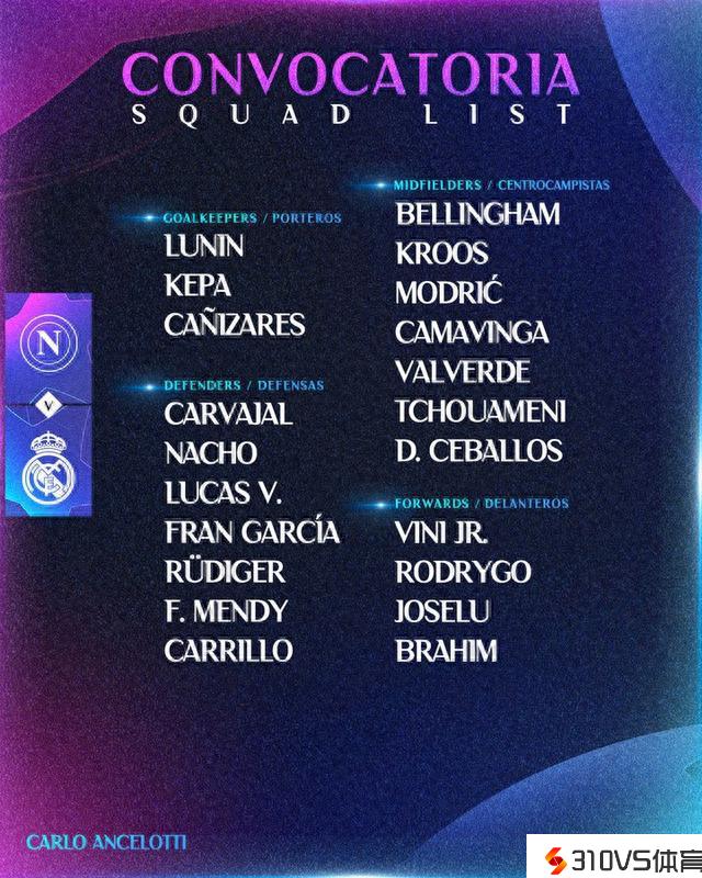 皇马欧冠大名单:维尼修斯领衔进攻线,莫德里奇&克罗斯坐镇中场
