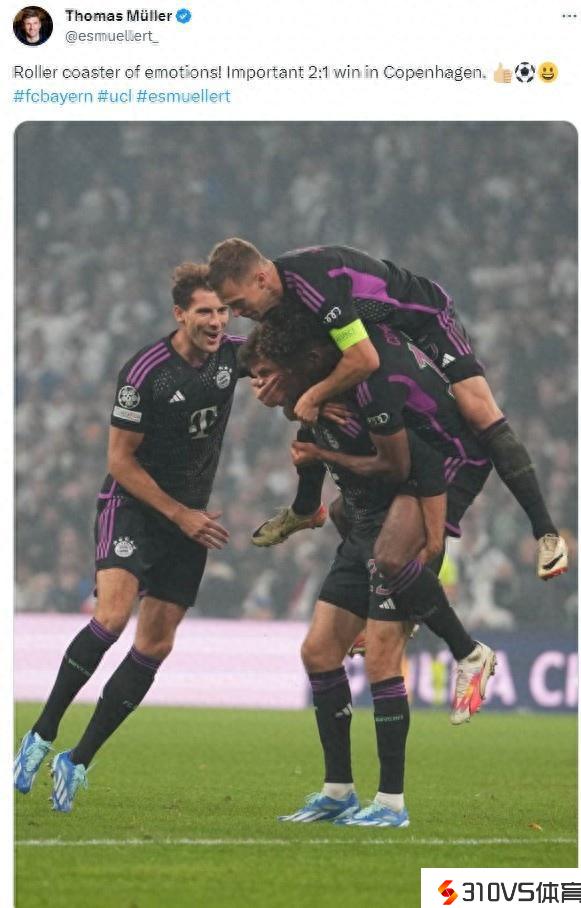 似乎过山车!穆勒赛后更新社媒庆贺拜仁2-1逆转