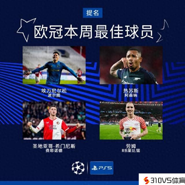欧冠本轮最佳球员候选:热苏斯、劳姆、埃万尼尔松中选