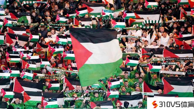 英媒:欧冠赛场上,大批凯尔特人球迷亮出巴勒斯坦国旗