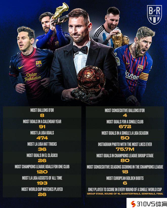 哪个最能够被破?梅西局部纪录:8金球年度91球!单一俱乐部672球