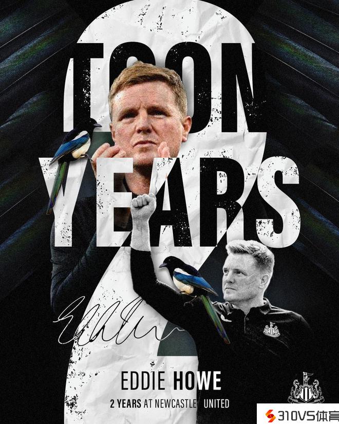 纽卡官推更新社交媒体静态,晒出了一张海报,庆贺埃迪-豪执教球队两周年。