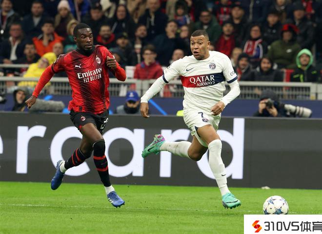 姆巴佩(右)在与AC米兰的竞赛中