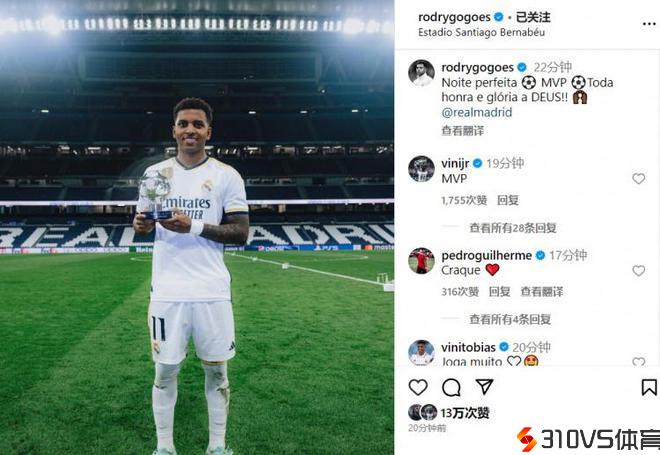 罗德里戈社媒庆贺成功:当场最佳球员,完美的夜晚