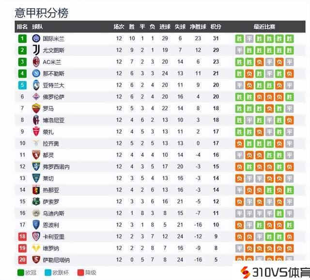 意甲最新积分榜:国米和尤文不相上下?两支球队争冠的格式出现了