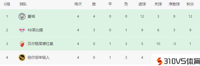 前面4轮欧冠小组赛战罢,曼城4战4捷,豪取12分,目前以3分的优势领跑G组积分榜。思索到小组中的贝尔格莱德红星和伯尔尼年轻人两队表现蹩脚,4轮事先均只拿到了1分,这意味着,曼城和RB莱比锡曾经双双提早两轮杀进了本赛季的欧冠16强。所以,这场竞赛无论关于曼城,还是关于RB莱比锡来说,都是一场有关痛痒的鸡肋之战。