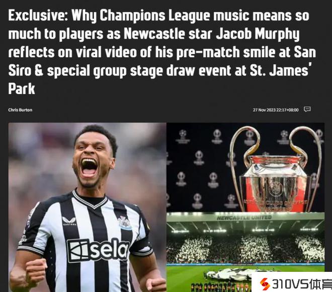 纽卡前锋墨菲:欧冠主题曲令人激动不已,主场打败巴黎意义严重