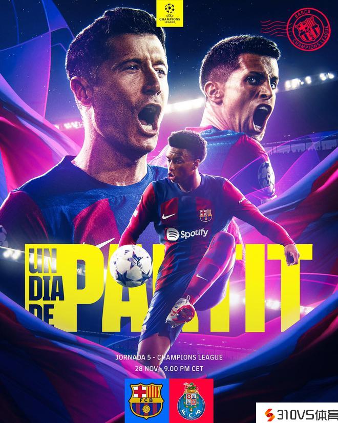 巴萨官方发布欧冠对阵波尔图海报:一场必需赢下的竞赛
