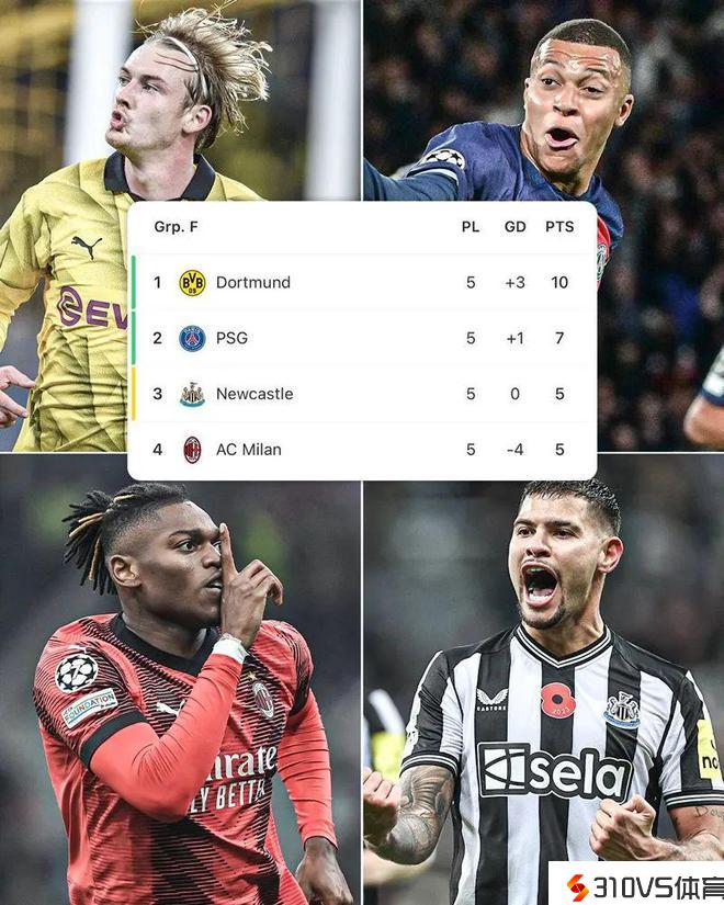 5轮事先,死亡之组的情势也逐渐趋于阴暗。10分的多特曾经出线,末轮只需不输巴黎就能锁定小组第一,巴黎赢球一定出线,平局则要寄希望纽卡不要击败米兰。纽卡和米兰目前同积5分,末轮死磕不只必需取胜,还要看巴黎与多特一战的结果。悬念留到最后一刻,死亡三选一的游戏,谁能逃出生天?