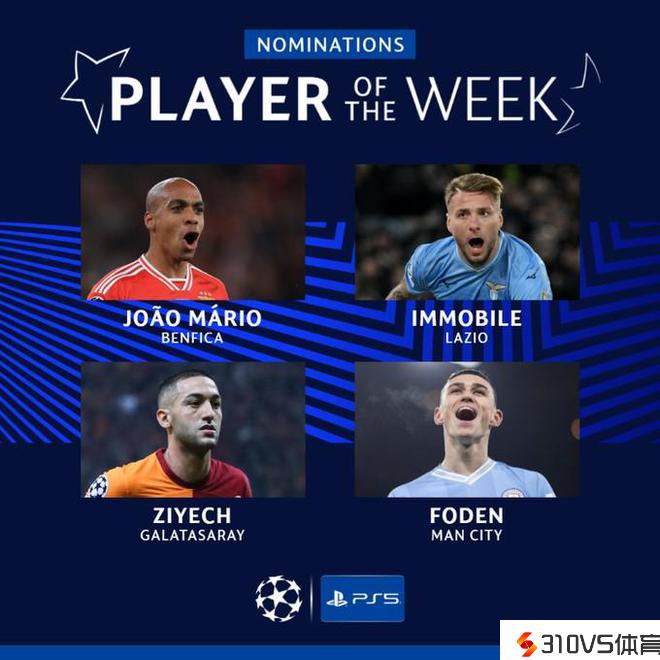 欧冠周最佳球员候选:齐耶赫、福登、马里奥、因莫比莱