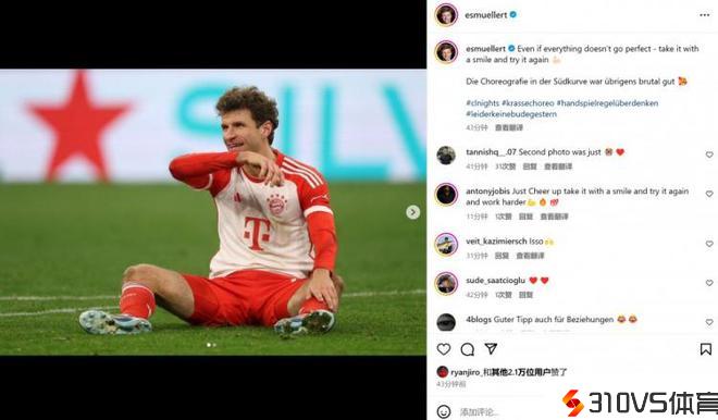 心态真好!穆勒社媒:假设一切都不完美,只需浅笑而过并再次动身