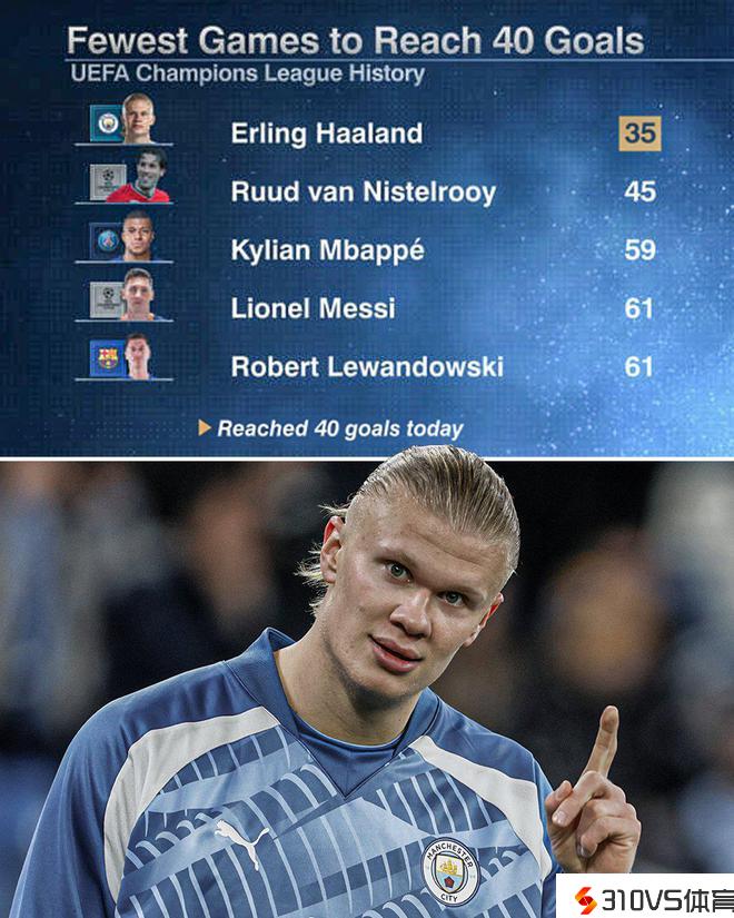 还要多久❓哈兰德距C罗的欧冠进球记载还差100球,他往年23岁