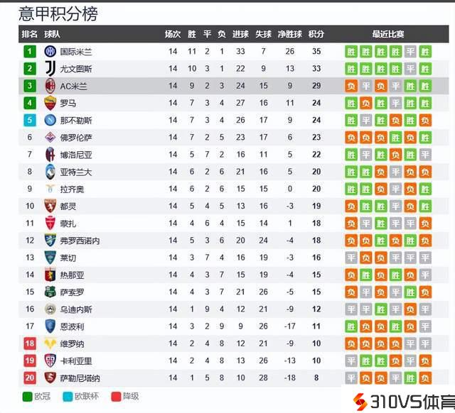 米兰第三,罗马第四,这两支球队的排名还不错,契合预期
