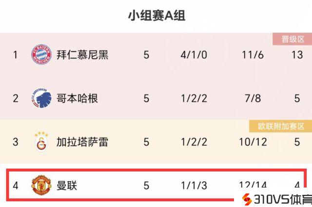 前5轮竞赛打完,曼联才拿到4分,这也招致他们在A组垫底,这个结果置信很多球迷都想不到,由于在抽签出炉之后,曼联一度被视为出线抢手,惋惜他们表理想在太差,如今濒临出局。