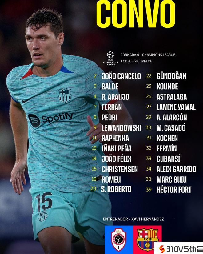 不轮休了!巴萨调整欧冠大名单:莱万、阿劳霍、京多安中选