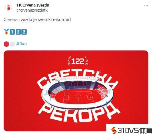 世界纪录!贝尔格莱德红星联赛主场延续122场不败