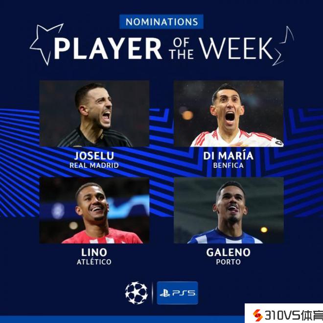 欧冠本轮最佳球员候选:迪马利亚、何塞卢、利诺、加莱诺