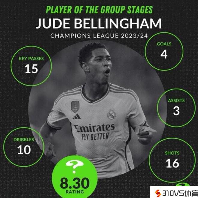 4球3助攻!贝林厄姆中选WhoScored欧冠小组赛阶段最佳球员