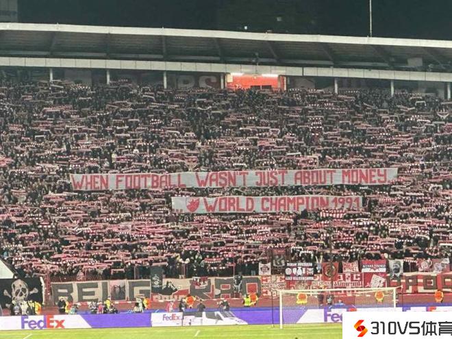 红星战曼城时球迷拉横幅:当足球有关于金钱 红星是91年欧冠冠军