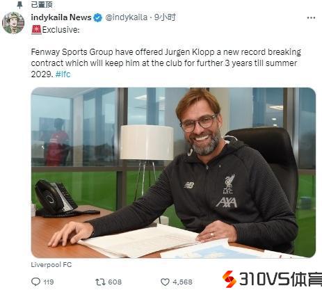 带队领跑英超!曝利物浦续约56岁克洛普至2029年,提供创纪录合同