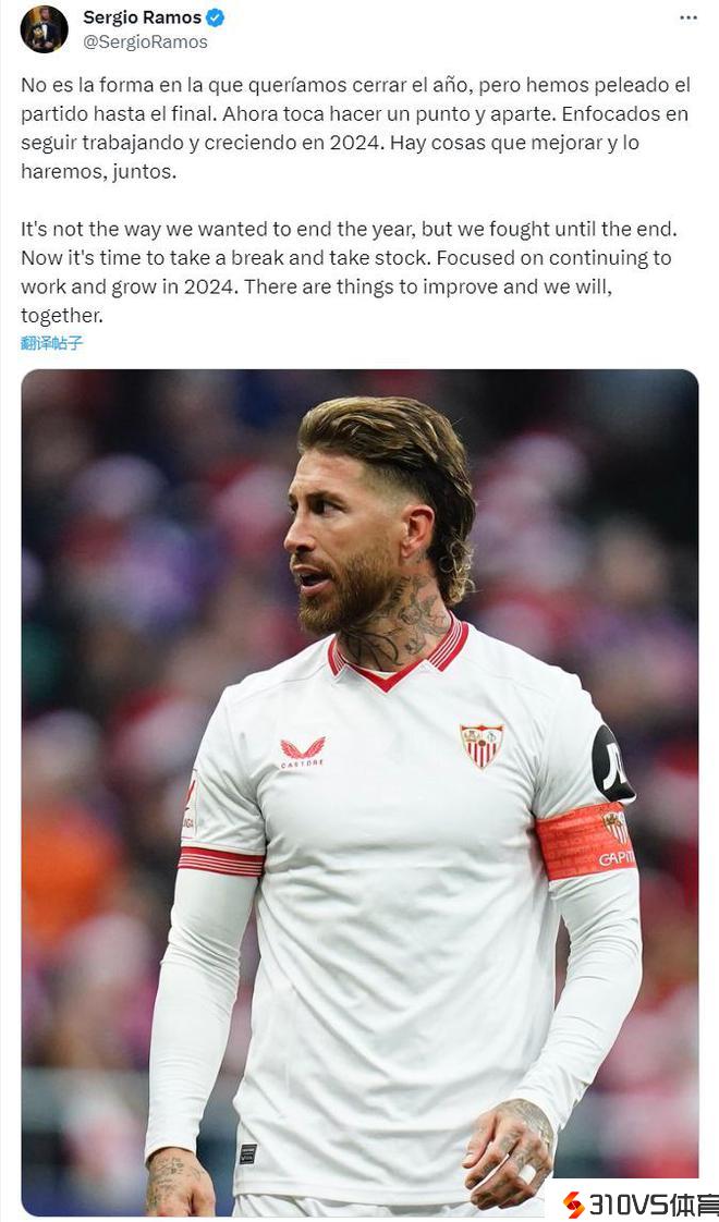 塞维利亚战绩蹩脚,拉莫斯社媒鼓舞球队:我们会在明年取得提高