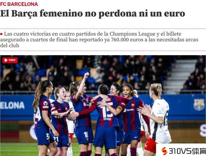 世体:巴萨女足欧冠提早出线,已为俱乐部锁定76万欧的重要奖金