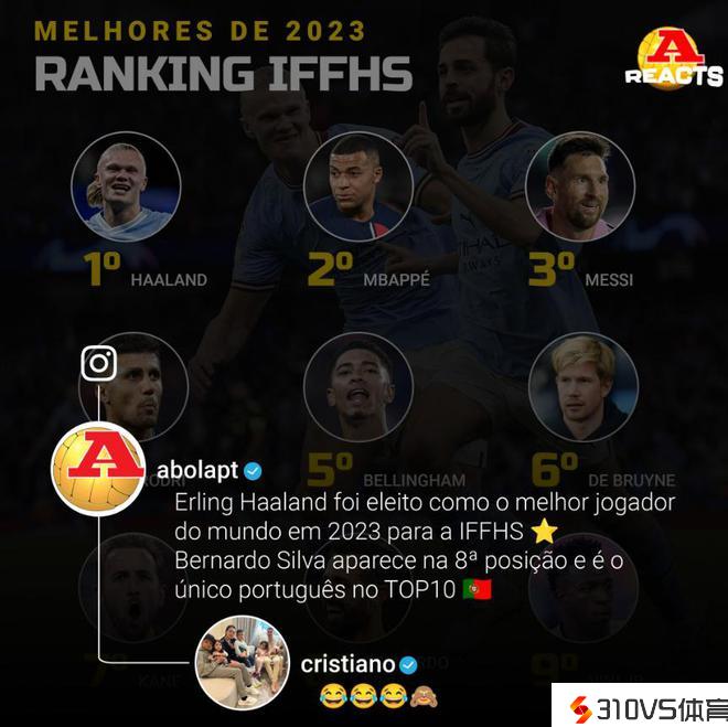葡萄牙媒体《球报》在ins晒出IFFHS评选的年度最佳球员排名,C罗评论: