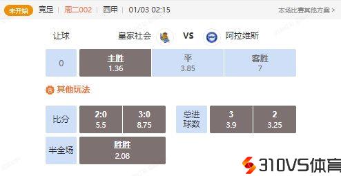 竞足周二002西甲皇家社会VS阿拉维斯