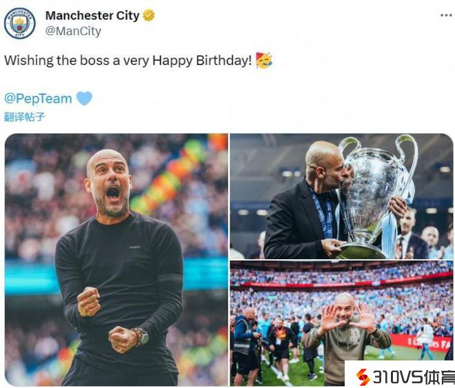 曼城官推祝瓜帅53岁生日快乐,已率队夺得欧冠等16项冠军
