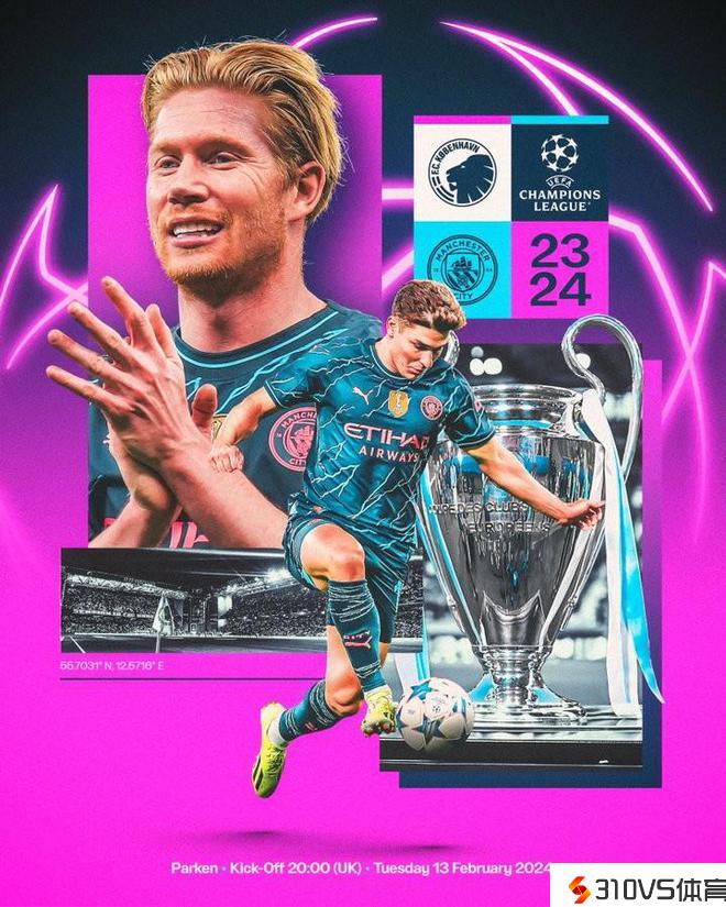 客战哥本哈根,曼城发布竞赛海报:德布劳内、阿尔瓦雷斯出镜
