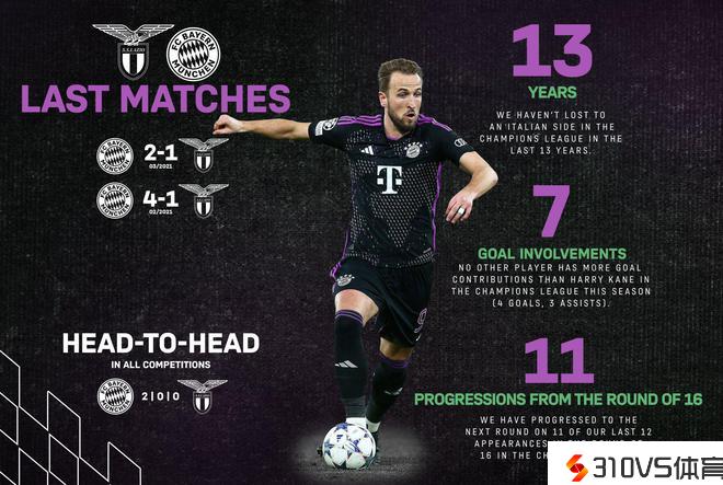 拜仁官推:球队13年欧冠遇意甲球队不败,凯恩直接参与进球最多