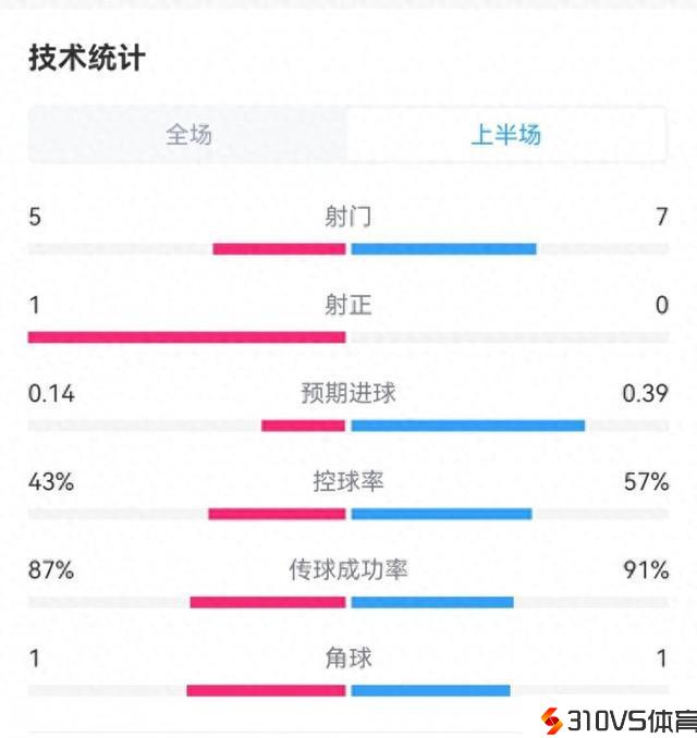 拜仁0-0拉齐奥半场数据对比:拜仁7射0正,蓝鹰5射1正