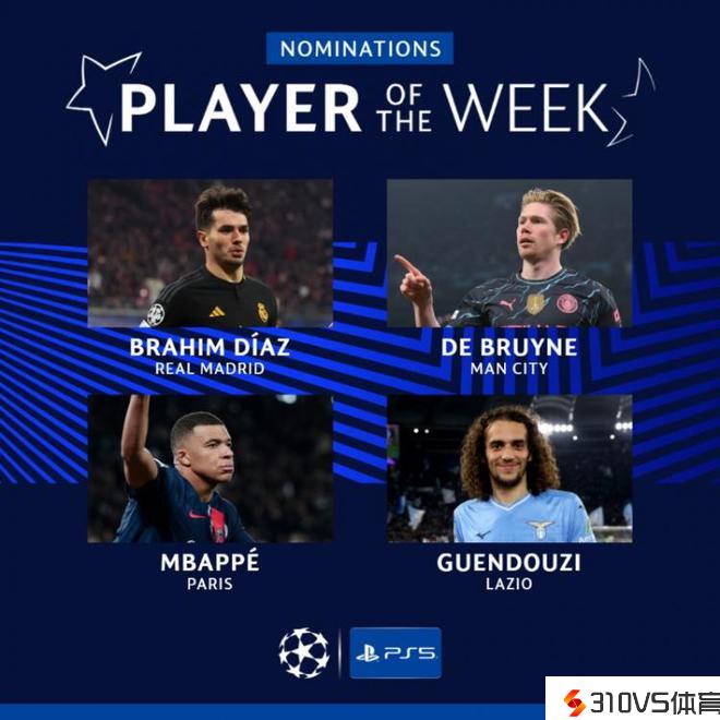 本周欧冠最佳球员候选:迪亚斯、德布劳内、姆巴佩、贡多齐