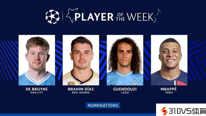 欧冠本周最佳球员候选:德布劳内、姆巴佩领衔,卜拉欣在列