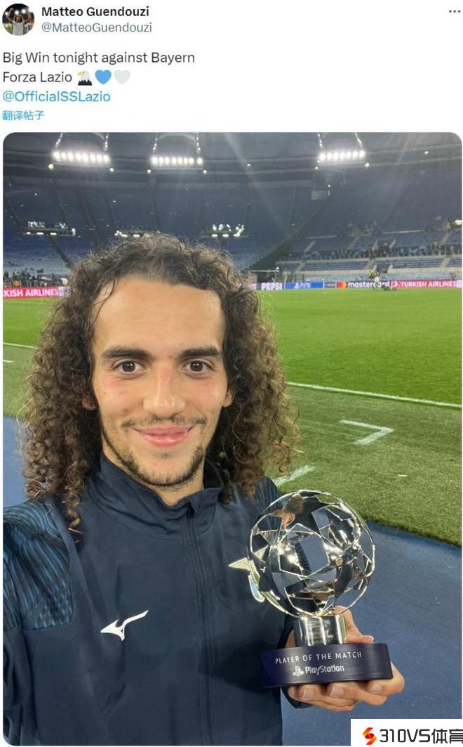 中选全场最佳,贡多齐社媒晒照:对阵拜仁拿下一场重要的成功!