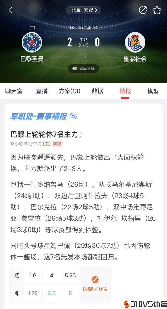 欧冠1/8决赛,大巴黎主场迎战皇家社会,红彩军机处赛前送上关键的赛事情报: