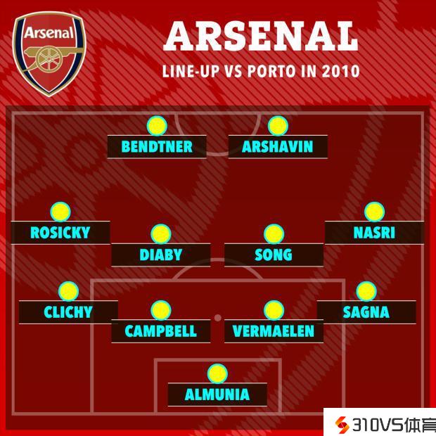 阿森纳上次进欧冠8强阵容:本特纳、阿尔沙文先发 纳斯里、宋在列