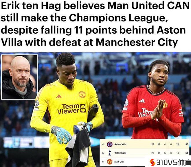 在输掉和曼城的竞赛后,曼城的净胜球再次回到正数,和保级军团卢顿一样。执教曼联100场之后,滕哈格胜率是61%,单场遭对手射门20+的场次多达14场,输球时单场丢球到达3个或以上的场次有7场。目前,积分榜上曼联落后维拉11分,打入前四希望十分渺茫,落后第5名热刺6分,且还多赛一场。