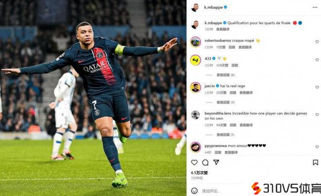 梅开二度闪耀全场!姆巴佩社媒晒庆贺照:晋级欧冠8强!