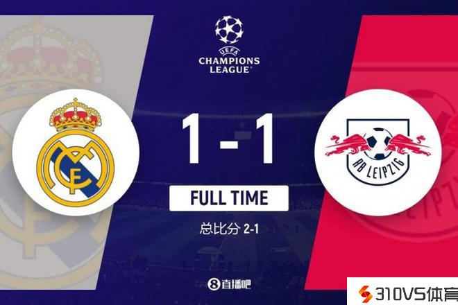 欧冠-皇马1-1莱比锡总比分2-1晋级8强 维尼修斯锁喉推人染黄+破门