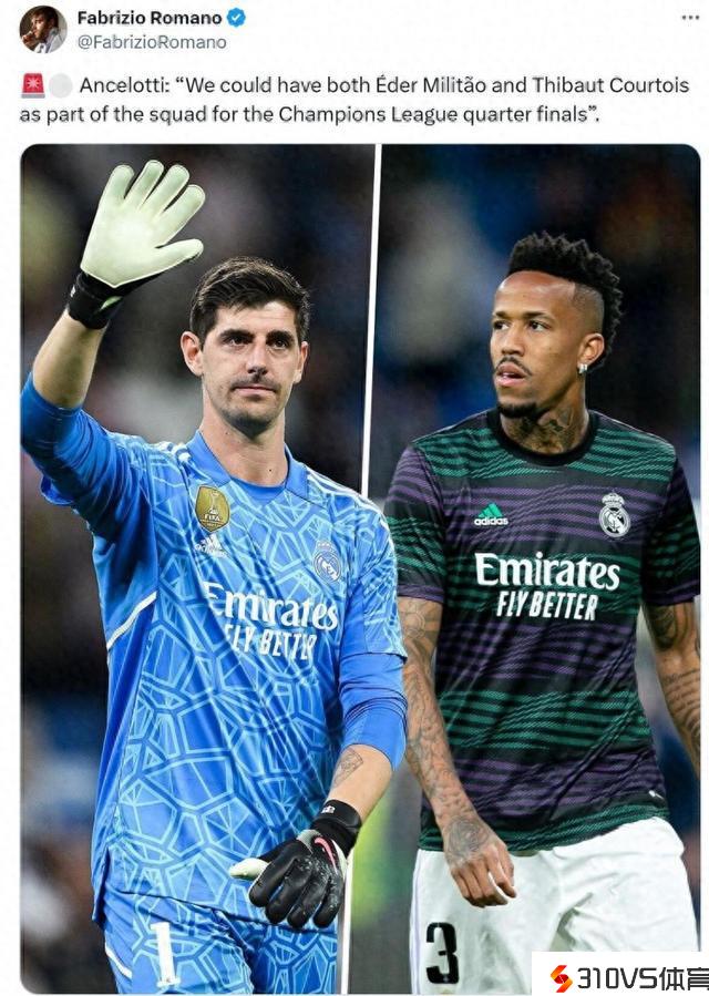 安帅:库尔图瓦、米利唐会在欧冠四分之一决赛复出