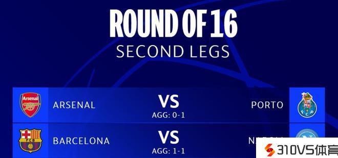 欧冠1/8决赛第二回合!枪手巴萨两大豪门有能够爆冷出局?