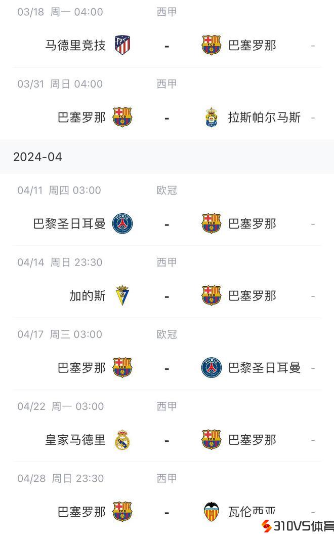 巴萨未来赛程:本周客战马竞,4月两战巴黎+对阵皇马